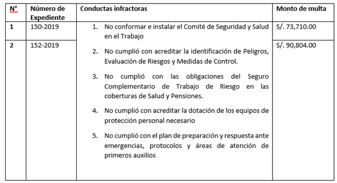 En el siguiente artículo se sintetizan las 2 resoluciones emitidas por SUNAFIL (Intendencia Regional de San Martín) desde enero a diciembre de 2020, en materia de seguridad y salud en el trabajo. Mediante las cuales se sancionó a dos municipalidades con una multa máxima de S/. 90,804.00 y una multa mínima de S/. 73,710.00.