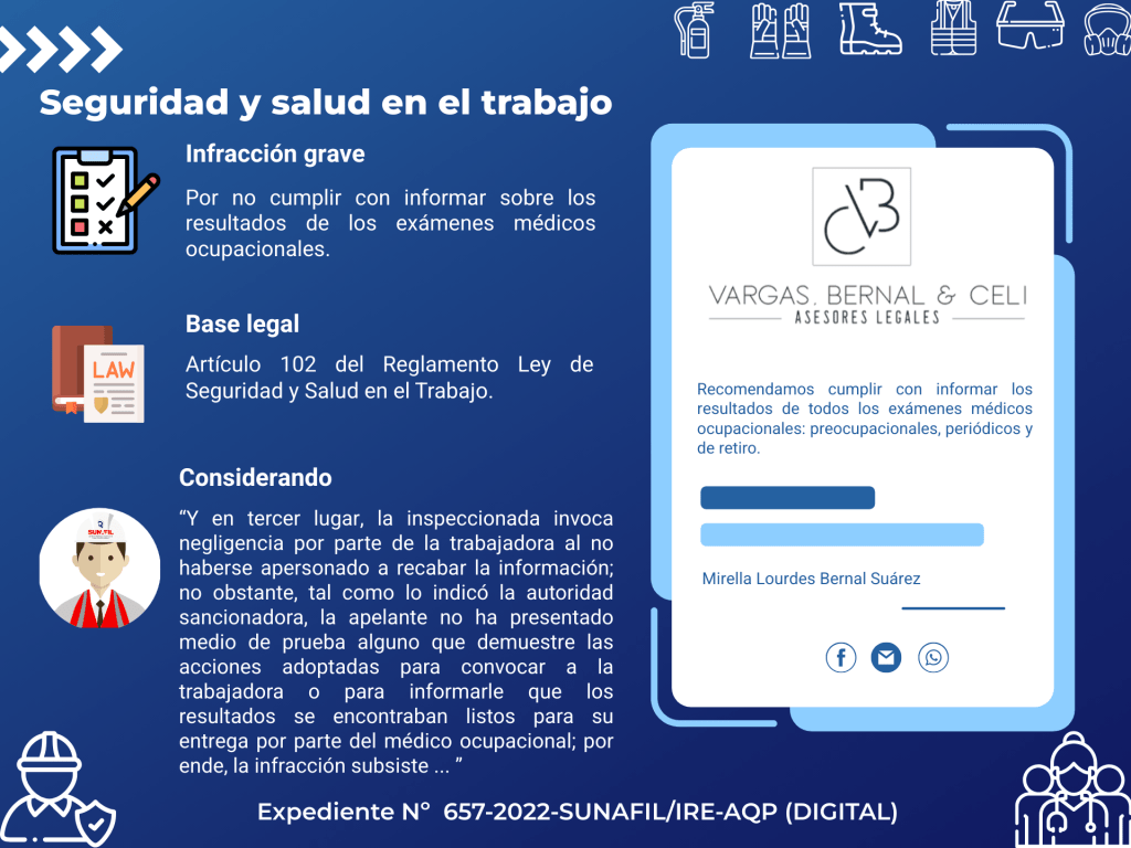 ¿Si la trabajadora jamás se apersonó a recabar los resultados de su EMO de retiro; es eximente de responsabilidad?